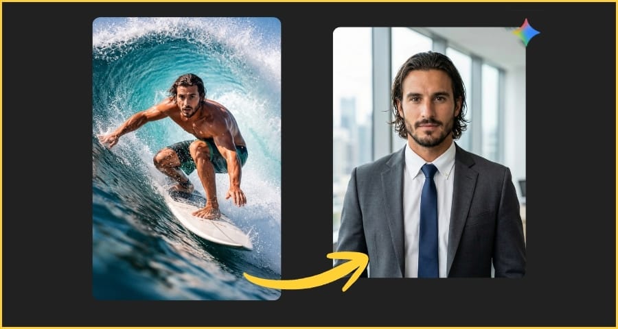 "Crea un retrato profesional corporativo usando mi foto cargada. Manten exactamente mis rasgos faciales e identidad. Viste al sujeto con ropa profesional moderna. El resultado debe ser apto para LinkedIn y webs profesionales.”Gemini genera una foto de perfil profesional con calidad de estudio, lista para usar en LinkedIn o tu web.